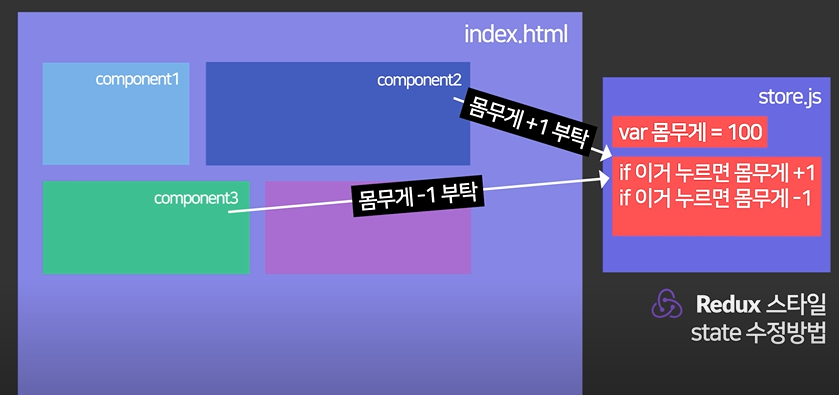 여러 컴포넌트들이 하나의 값을 공동으로 수정할 때 Redux로 하나의 js에서 그 값을 관리하도록하는 것.
