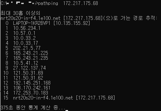 - 외부 ip 연결 확인. : nslookup | ping | pathping | tracert