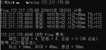 1. ping(packet internet grouper) : ping + (ip주소 or 도메인주소)
